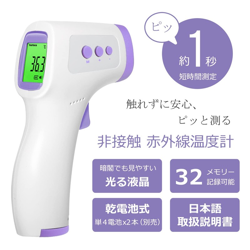 - 非接触式温度計 - 本製品は非接触型温度計です。赤外線センサーにより非接触、1秒で測定可能です。