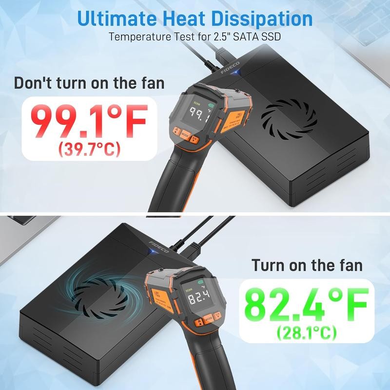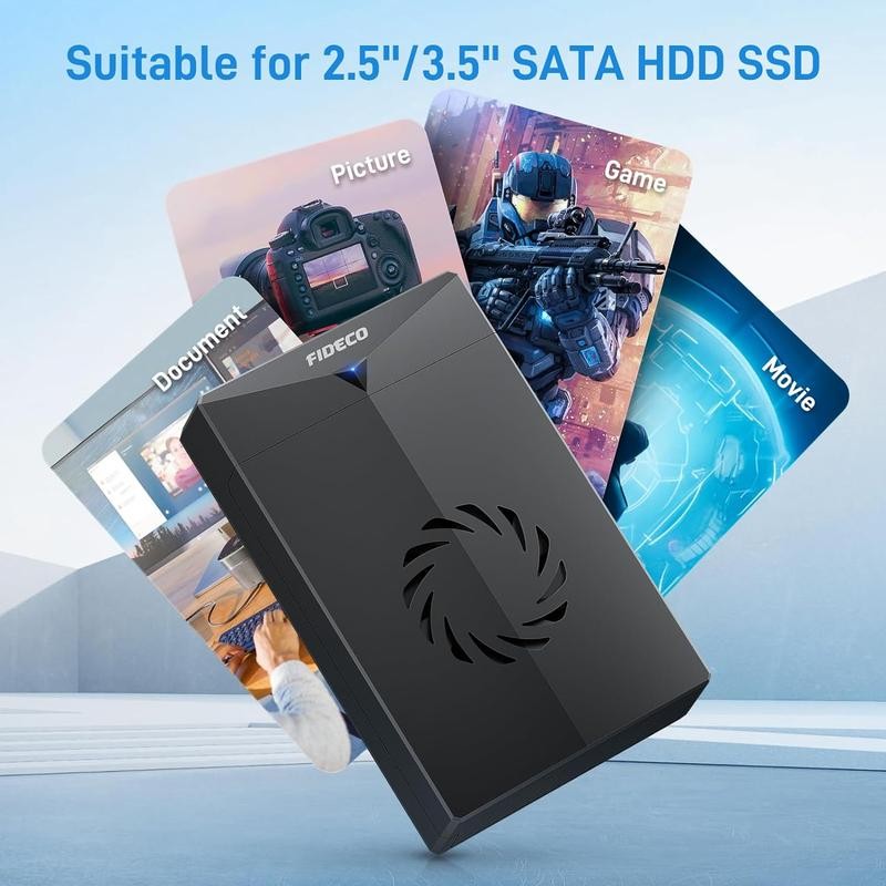 【Supported Hard Drive】FIDECO hard drive enclosure can support 2.5" and 3.5" SATA hard drives. Please note that it cannot support any IDE hard drive.