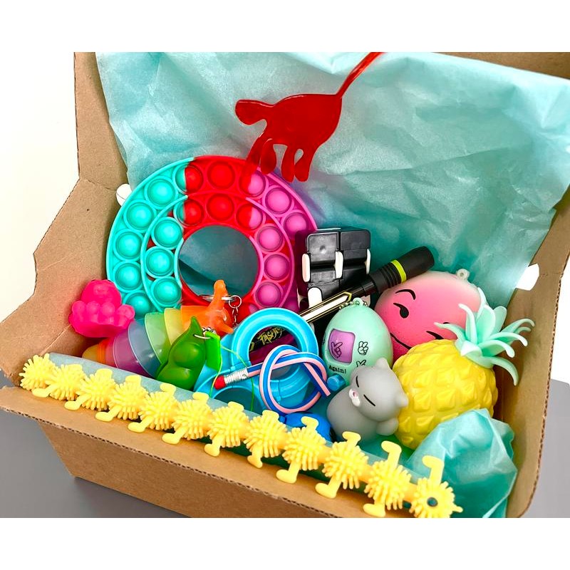 Fidget Box containing 15 Toys and personalised bag Autism ADHD stress anxiety neurodivergent