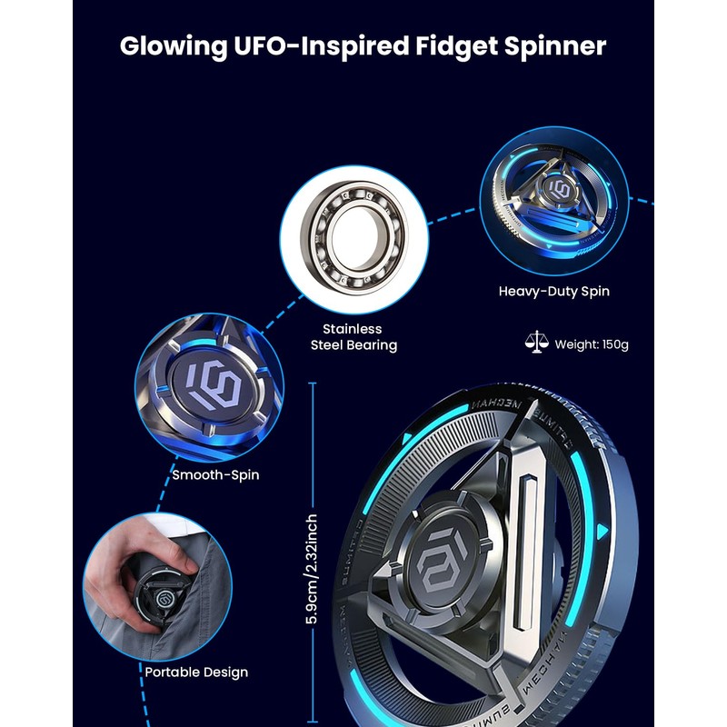- Glow in the Dark Design: Modern glow UFO fidget toy, suitable for parties or dark rooms. Charge it under light and enjoy the mesmerizing glow with the included portable UV flashlight!