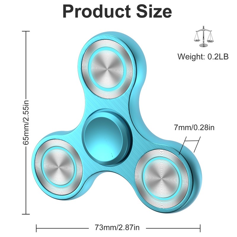- Materials: The fidget spinner use Stainless steel bearing,The body is made of aluminum metal material with high quality,feel very good gravity,fast rotation. Finger Spinner strictly comply with US standard and CPC children's product certificate and CPSIA apprvoed