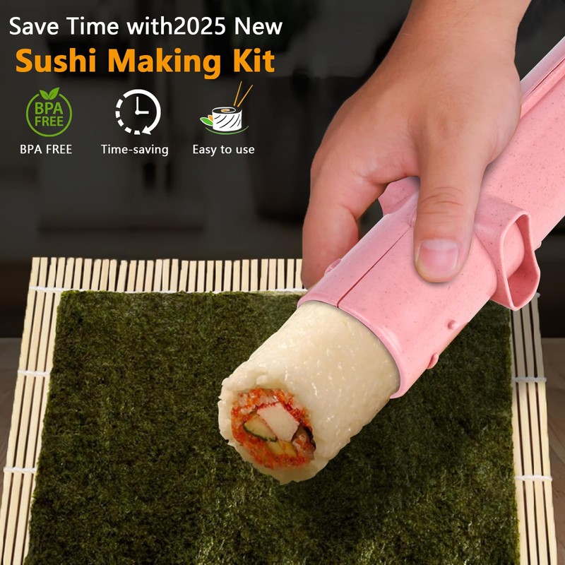 - All-in-One Sushi Kit: 2025 upgraded sushi bazooka (non-stick) + bamboo sushi mat + spatula for perfect rolls
