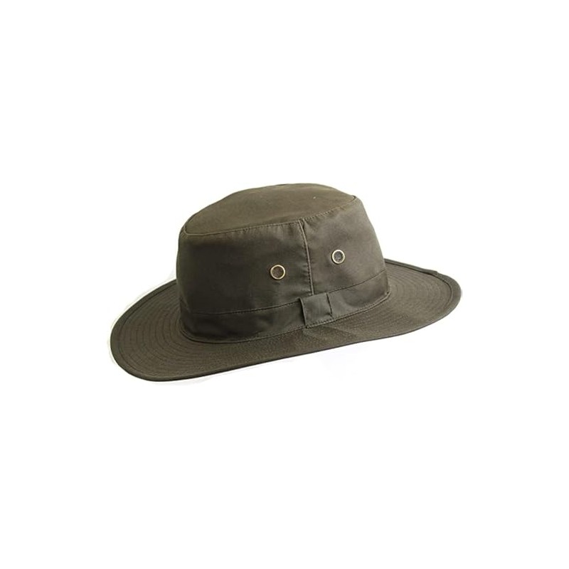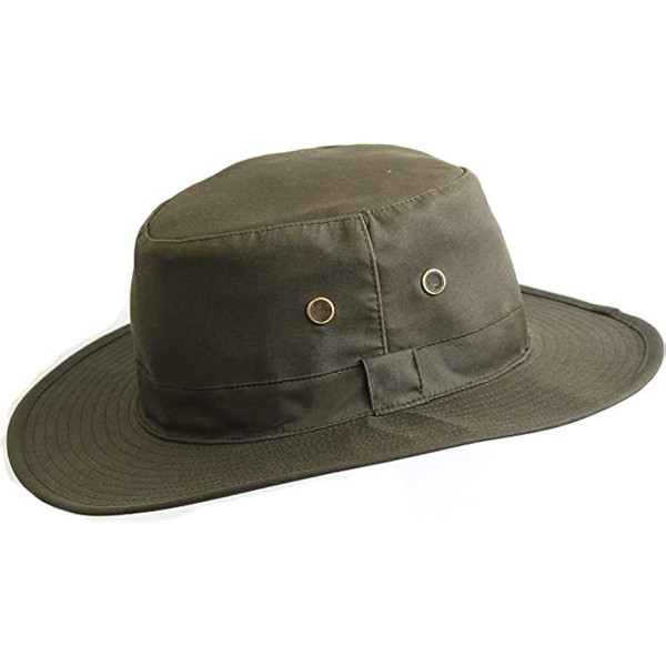 Fidra Waxed Waterproof Bush Fedora Rain Hat with Eyelets (59cm, Olive), 7 1/4