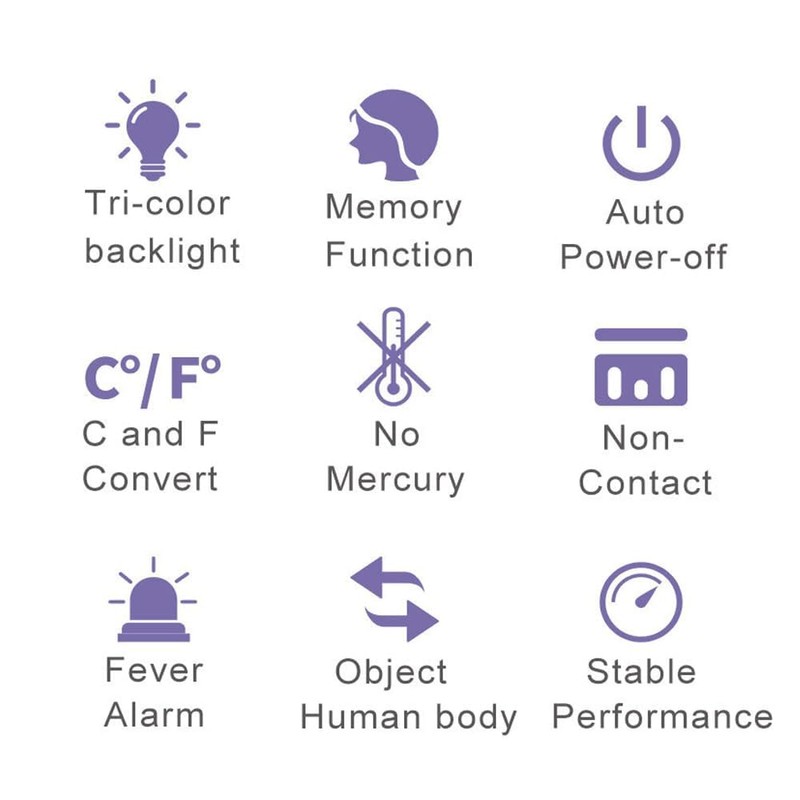 - 🌡️【Präzision und Geschwindigkeit】 Im Vergleich zu traditionellen Quecksilberthermometern nutzt unser berührungsloses Thermometer hochempfindliche Infrarotsensoren, um präzise Messwerte in nur einer Sekunde zu liefern. Die hochpräzise Thermosonde gewährleistet eine Messabweichung von ≤ ±0,2 Grad.
