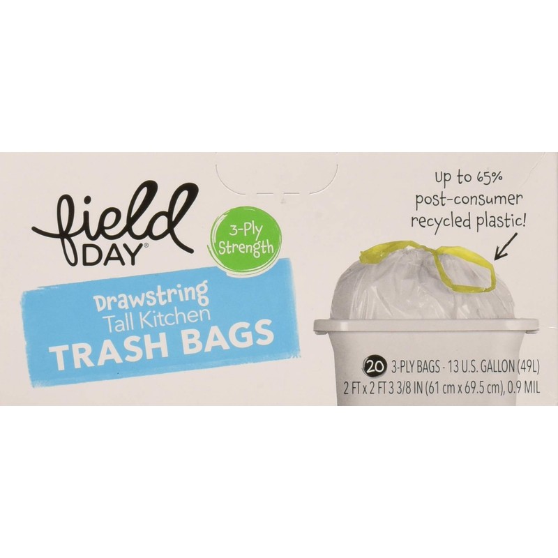Field Day Drawstring Tall Kitchen Trash Bags, 20 Count