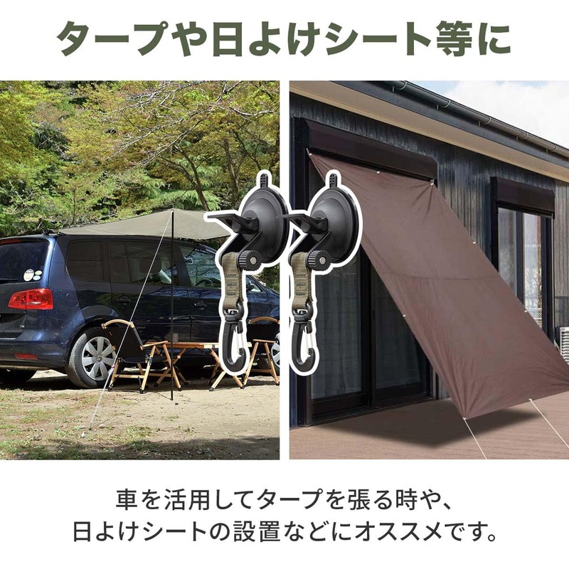 Recommended for tarps with eyelets. Suction cup hook that holds it firmly in place. Suction cup type is easy to install without any tools. It is recommended for installing a tarp when using a car and installing a sunshade sheet.