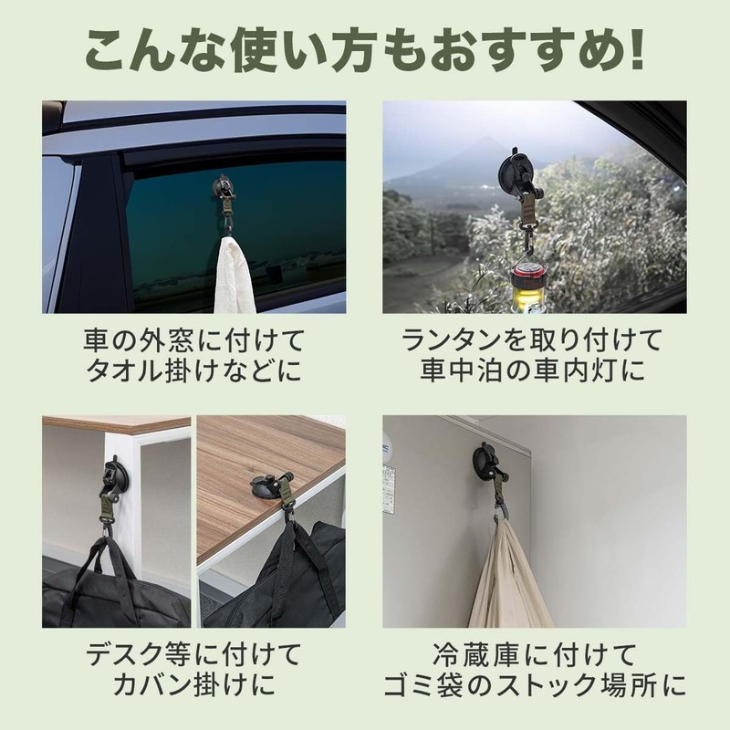 FIELDOOR Suction Cup Hook, Carabiner, Set of 4, Super Strong Fixation with One Touch, Tarp, Camping, Sun Protection, Shade for Car Side Tarp, Sleeping in Car, Wall Hanging Hook, Towel Bag, Awning