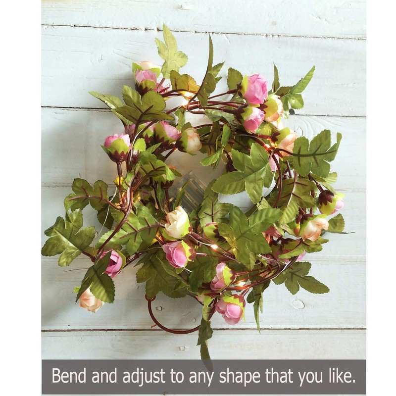 - đ·ăFOR BOTH DAYS & NIGHTS DECORATIONSă- It works excellently as a garland for indoor or outdoor decors in the daytime. At night, the lighted LED on its string will accent any room and generate a warm atmosphere for any occasion. The flowers are soft design and pretty sturdy. Bend and adjust to any shape that you like for your decorating needs.