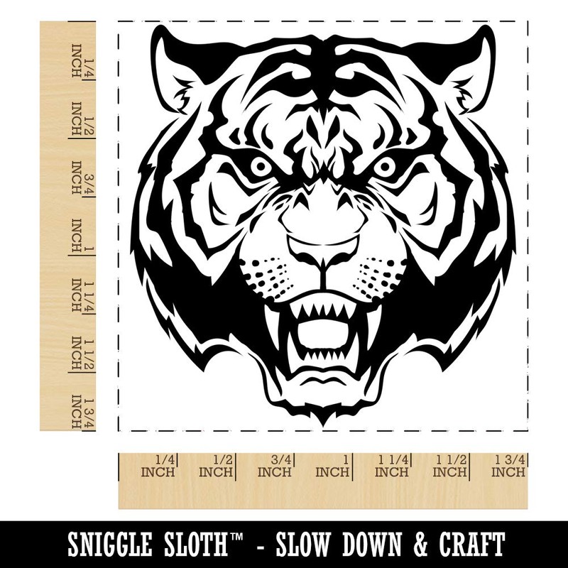 Fierce Tiger Face Square Rubber Stamp for Stamping Crafting - 1.75in Medium