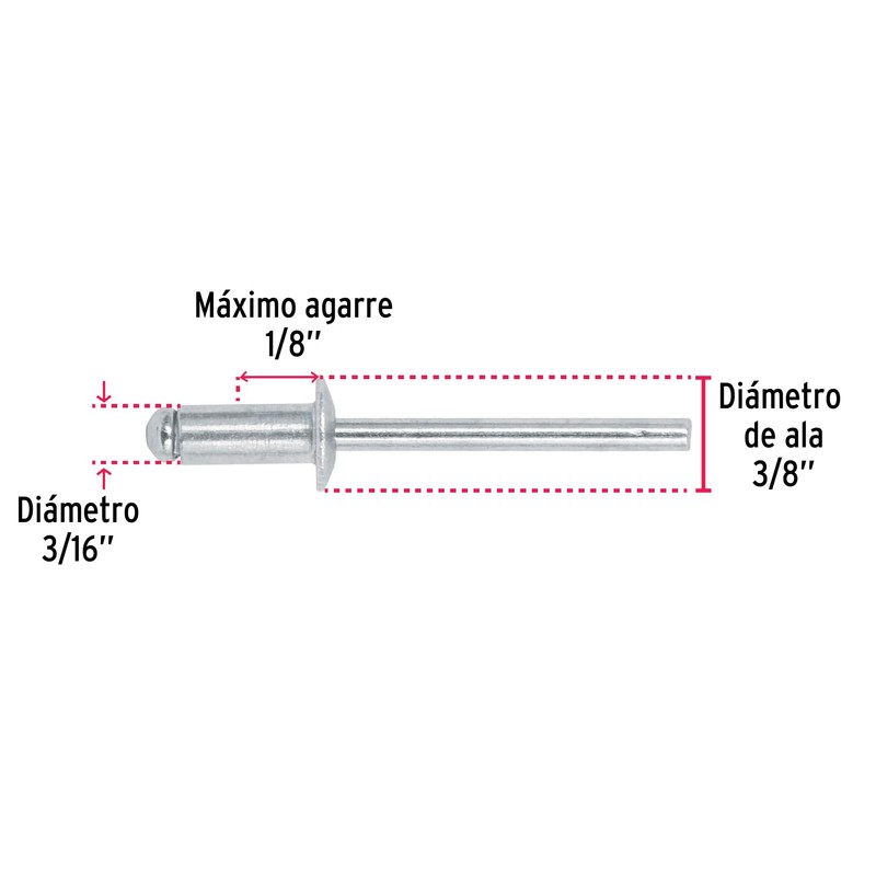 Fiero R-62B, Remache con diámetro 3/16", agarre 1/8"