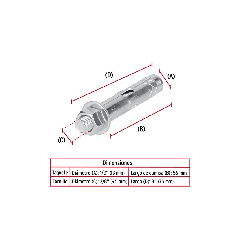 Fiero TAE-3/8T, Bolsa con 4 taquetes expansivos de 3/8" con tornillo