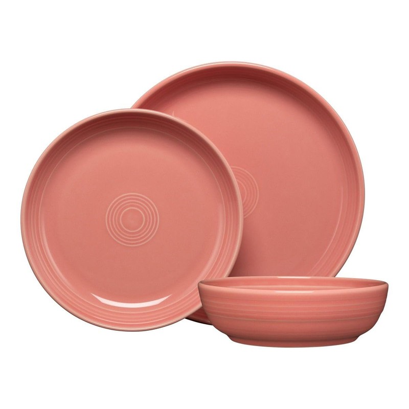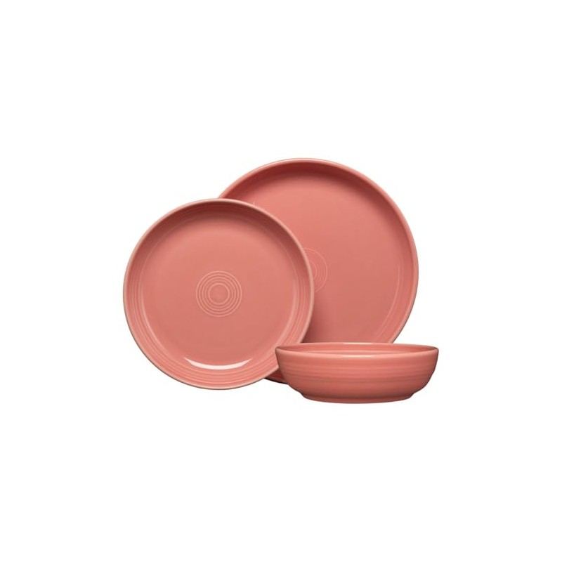 Fiesta® 3-Piece Coupe Place Setting – Durable Ceramic, Lead-Free, Dishwasher/Microwave/Oven Safe – Made in USA Dinnerware - Peony