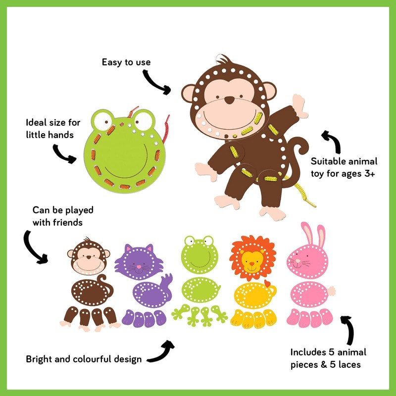 • So Appealing, Your Kids Will Love It: Our threading activity sewing kit for kids has 5 animals and five coloured laces to improve their creativity. The animals are bright and detailed so that they can appeal to young kids!