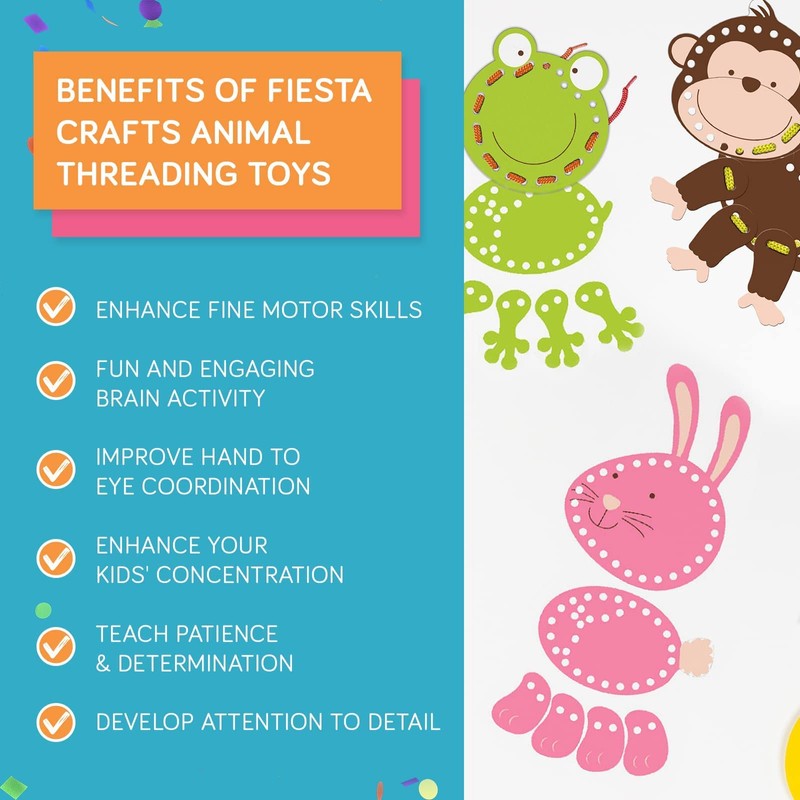 Fiesta Crafts Animal Lacing Cards - Bright Threading Toys for Kids to Improve...