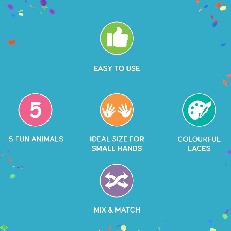 • Lace and Trace Animal Toys: Our toddler crafts are excellent toddler activities that teach your kids the value of details. Help your children develop their hand-to-eye coordination and attention skills with these threading laces toys.