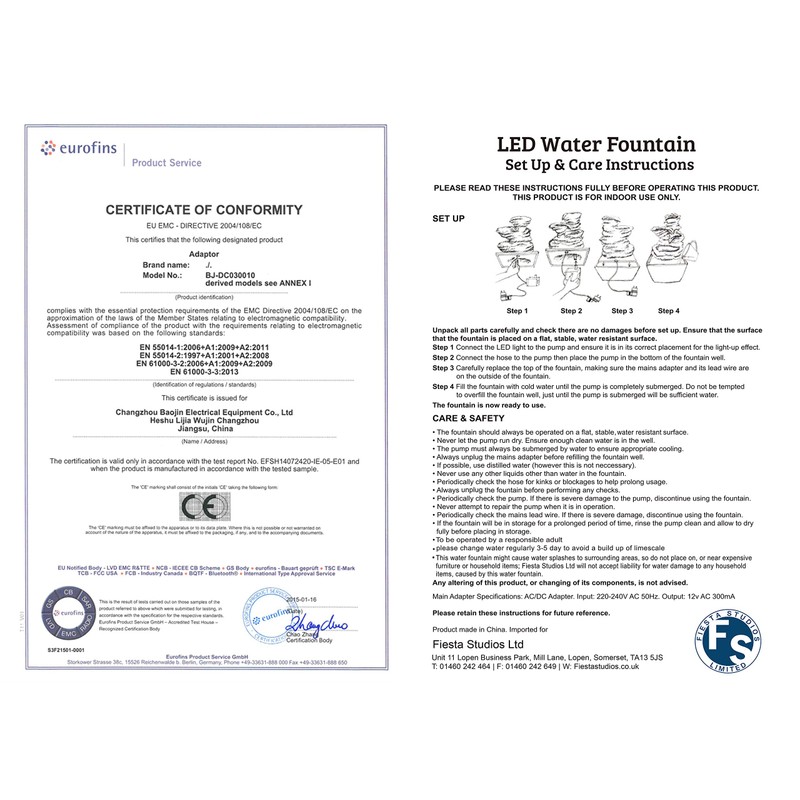 - Features and LED light and motor pump- Includes a power cable and plug.