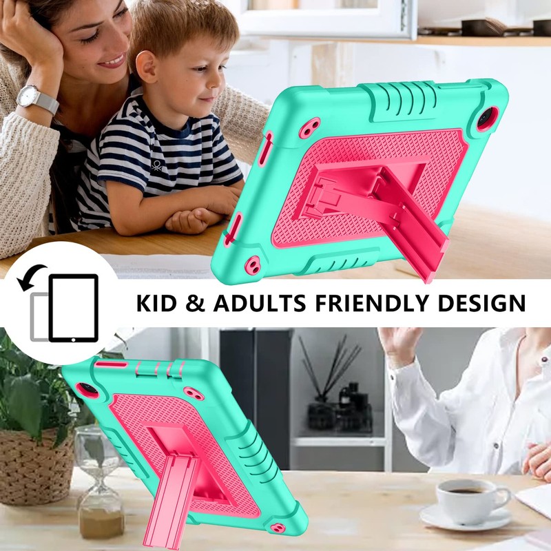 - The Tablet is made of shock-absorbing Non-toxic silicone and polycarbonate material, protect your tablet from accidental drops, bumps and shock.