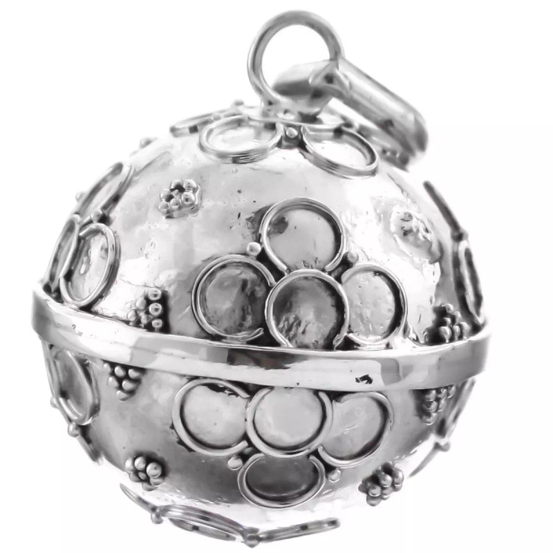 FifiRose 925 Silver 18mm Harmony Ball Chime Round Bali Handmade Sterling Pendant, 1 1/8"