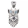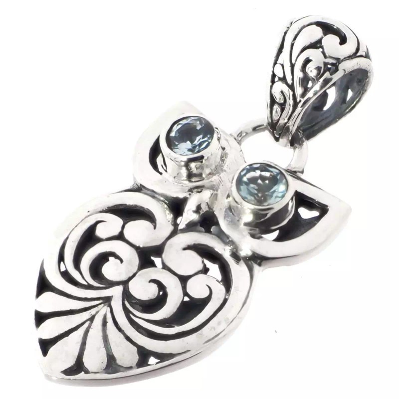 FifiRose 925 Sterling Silver Owl Bali Scroll Blue Topaz Bird Sterling Pendant, 1 1/8"