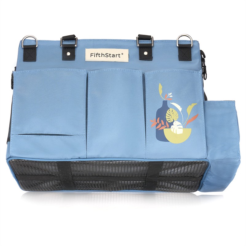 FifthStart Multiuse Cleaning Caddy with Waist & Shoulder Strap - Diaper Caddy - 9 Pockets & Easily Cleaned - Easy Clean Beach bag with Mesh Base & Adjustable Compartments (Blue, X-Large)