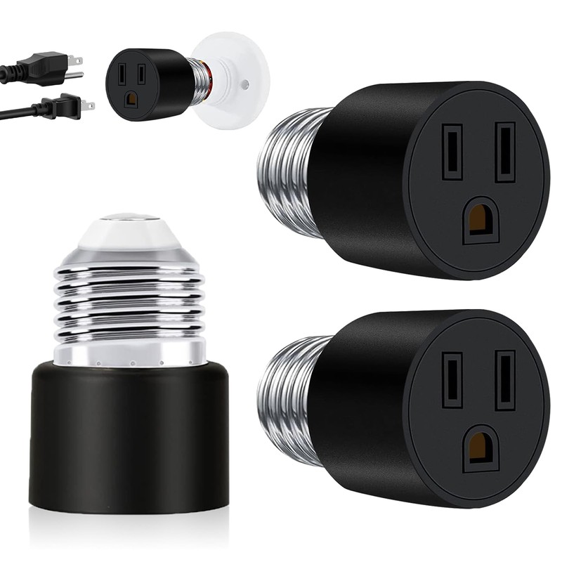 The three-pronged design supports both two-pronged and three-pronged, allowing for a wider range of applications than two-pronged socket to plug adapters. For use on porches, patios, and garages. These electric light socket adapters are easy to screw in and fit snugly into the socket