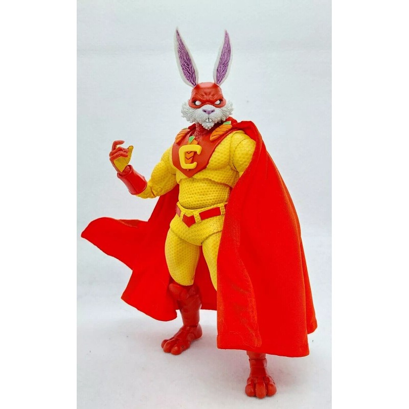 This custom wired cape with logo is specifically designed for McFarlane Captain Carrot action figure. The cape is wired to easily creating floating effect. Since the cape is soft, it will not hinder articulation. In addition, it adds more realism to the figure.