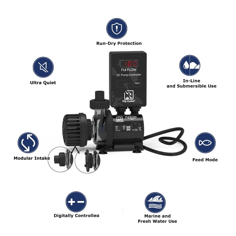- The Fiji Cube Fiji Flow DC-550 Water Pump is a complete solution for returning water from your sump back to the aquarium.