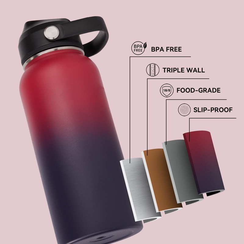 - 🧊🧊🧊EXCELLENT INSULATION: This insulated stainless steel water bottle structure is made of copper coating, and the four layer structure can effectively ensure the constant temperature of the liquid in the cup. It can store 12 hours of hot drinks and 24 hours of cold drinks, meeting the outdoor drinking water needs of the day.