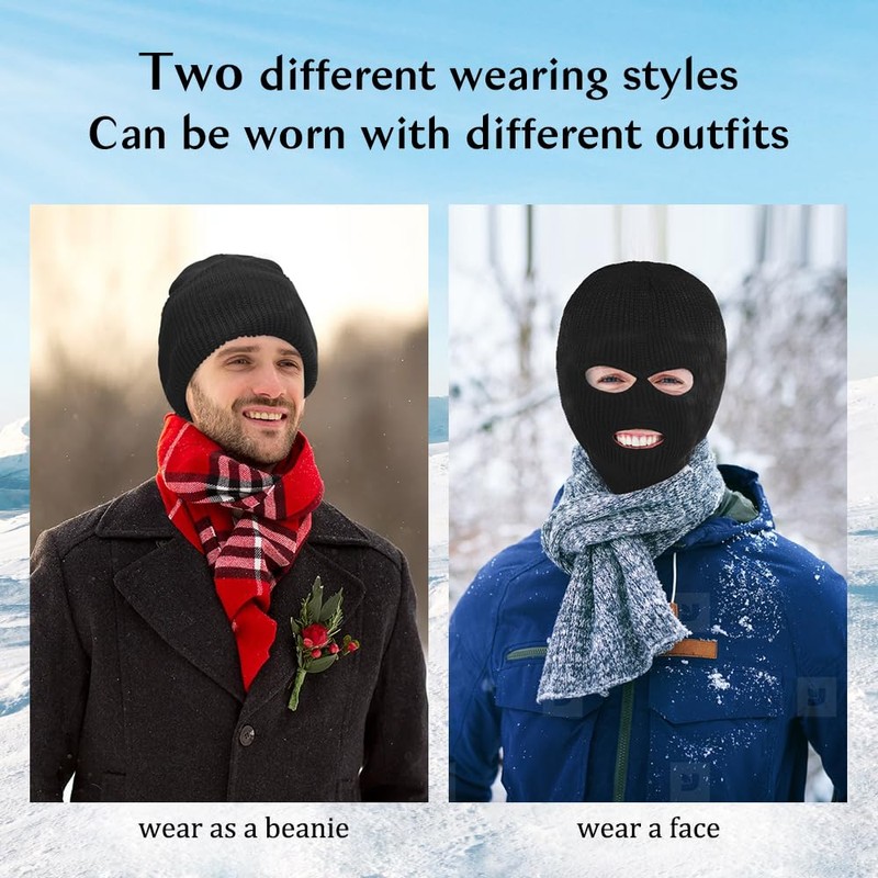 fIkxtvee Knitted 3 Hole Headwear (1 Pack), black