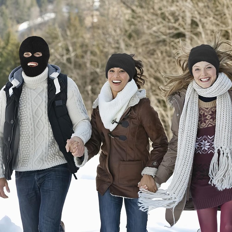• Warm head cover – This knitted face mask is a practical accessory that keeps the whole head and face warm on cold winter days.