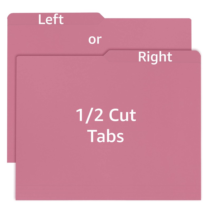 File Folder, Letter Size, 1/2 Cut Tab, 25 Pack (Pink)