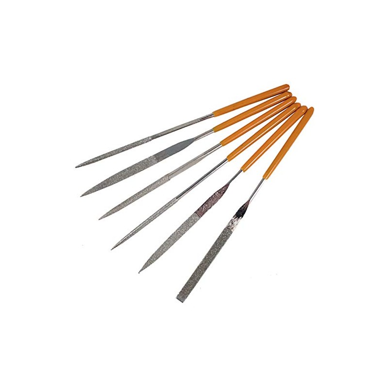 This set of diamond needle files features six commonly used file shapes Round, Half-Round, Flat Barette, Flat Warding, Square and Triangular Rasp. This set features a micro profile with a shorter cutting surface, approximately 2 inches of the overall 5 1/2 inches.