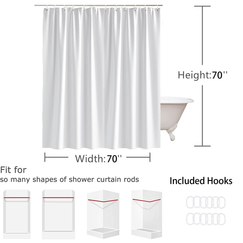 - Made from polyester fabric , this curtain is easy to install and maintain, providing a practical solution for any bathroom.shower curtain Size: 70 wide x 70 long inches (180cm x 180cm), Fits most (standard) bathroom decor,Include Plastic hooks.(Different sizes of shower curtains have different numbers of hooks.) Size pattern can be customized.