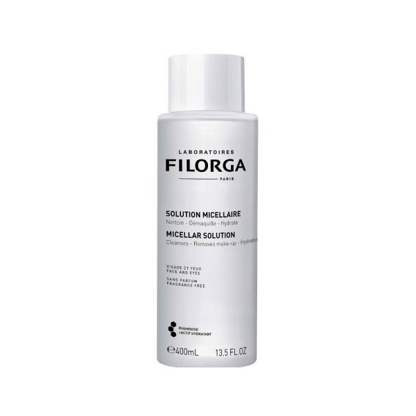 Filorga Micellar Solution 400ml is a 3-in-1 cleansing micellar water that removes make-up from face and eyes, soothes and moisturizes.