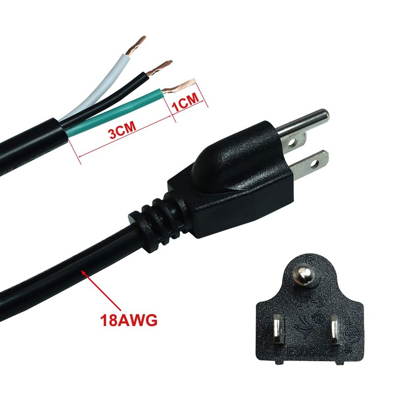 - 6-Feet, 3-wire, 16/3 replacement power cord NEMA 5-15P male, which has open wiring on the other end.