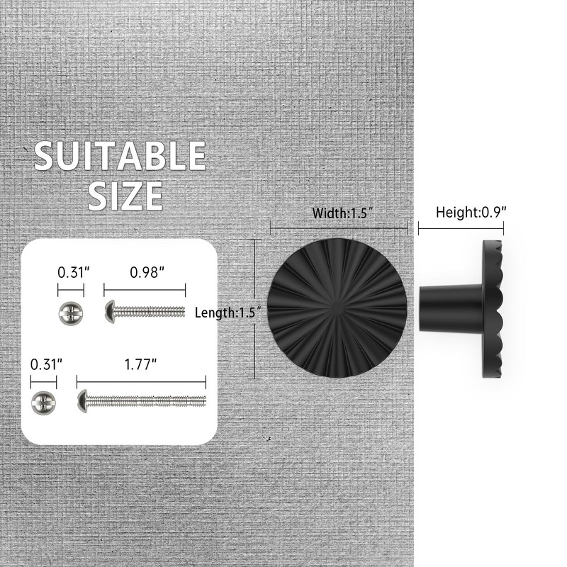 • Size Details:The Knobs Diameter 1.45"(37MM); Height: 0.8"(22.5MM);Please check the size of the kitchen knobs you need carefully before you buy.