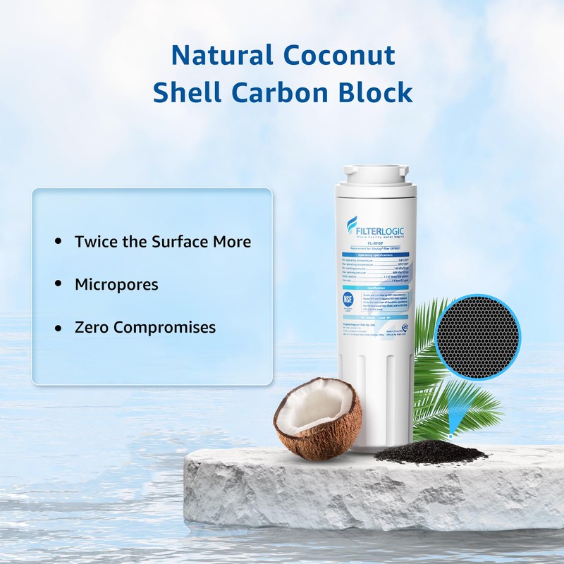 - Crisp and fresh water: With our natural coconut shell carbon block, more impurities can be absorbed than low-priced and mixed carbon block. Filterlogic refrigerator filter significantly improves the taste of drinking water to provide pure-tasting water.