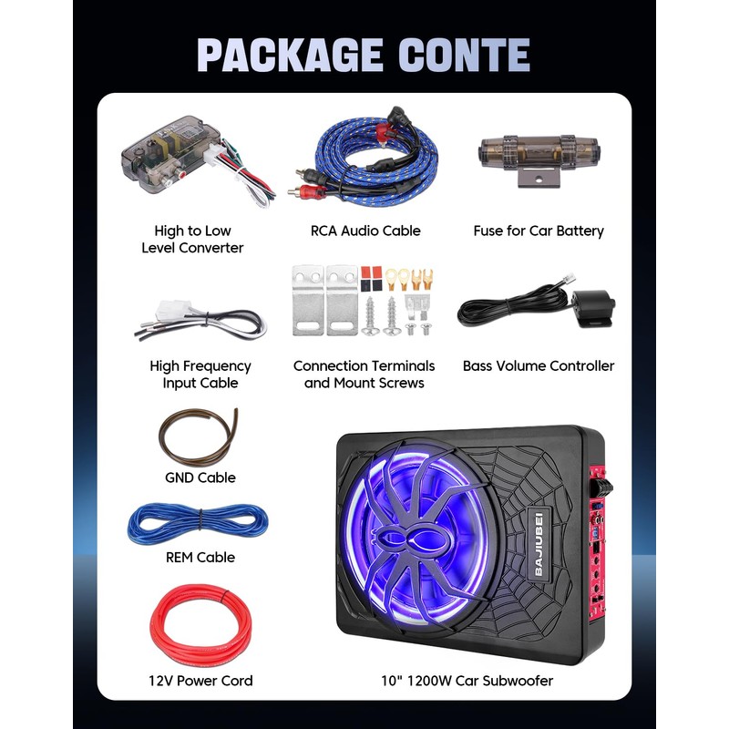 - Easy Installation with Mounting Kit: Includes a complete mounting wire kit for quick, hassle-free installation, making it simple to set up and start enjoying rich, deep bass in no time