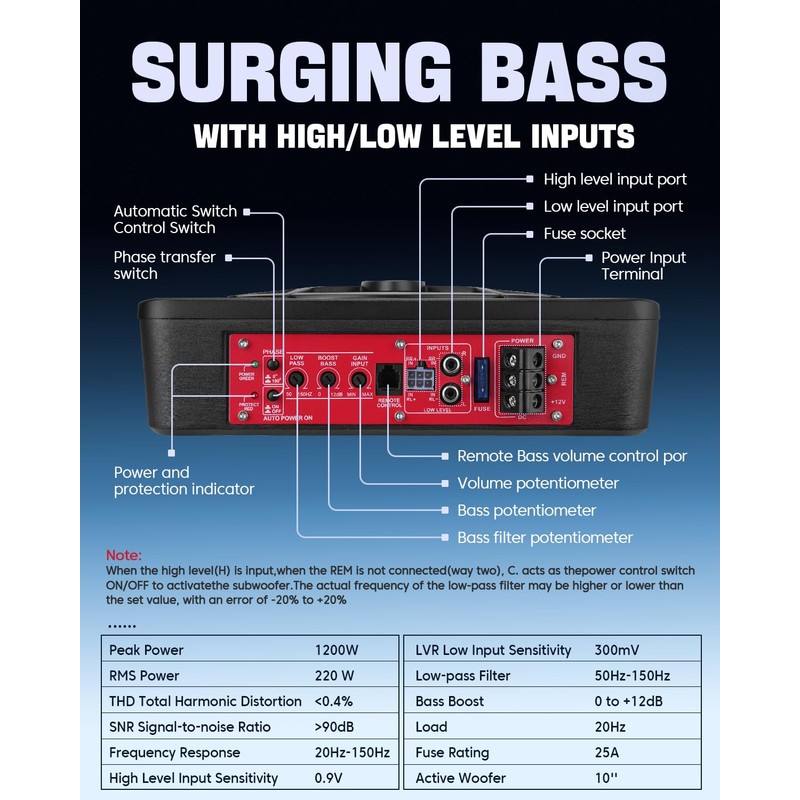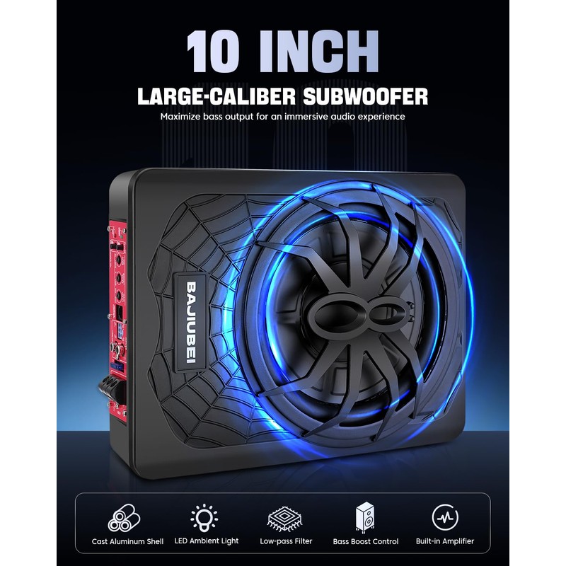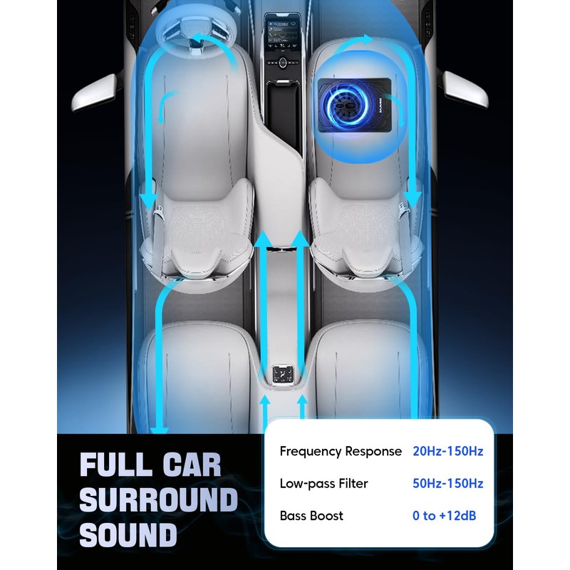 - Powerful & Compact Design: Delivering 1200W peak power, this slim under-seat powered subwoofer offers deep, punchy bass in a compact design that fits effortlessly under most car or truck seats without compromising space