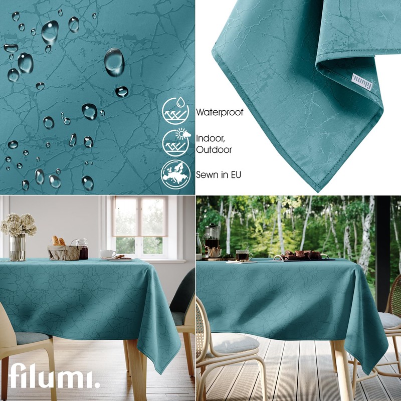 Filumi Tablecloth 120 x 220 cm Blue Washable for Indoor Outdoor Marble Patter...