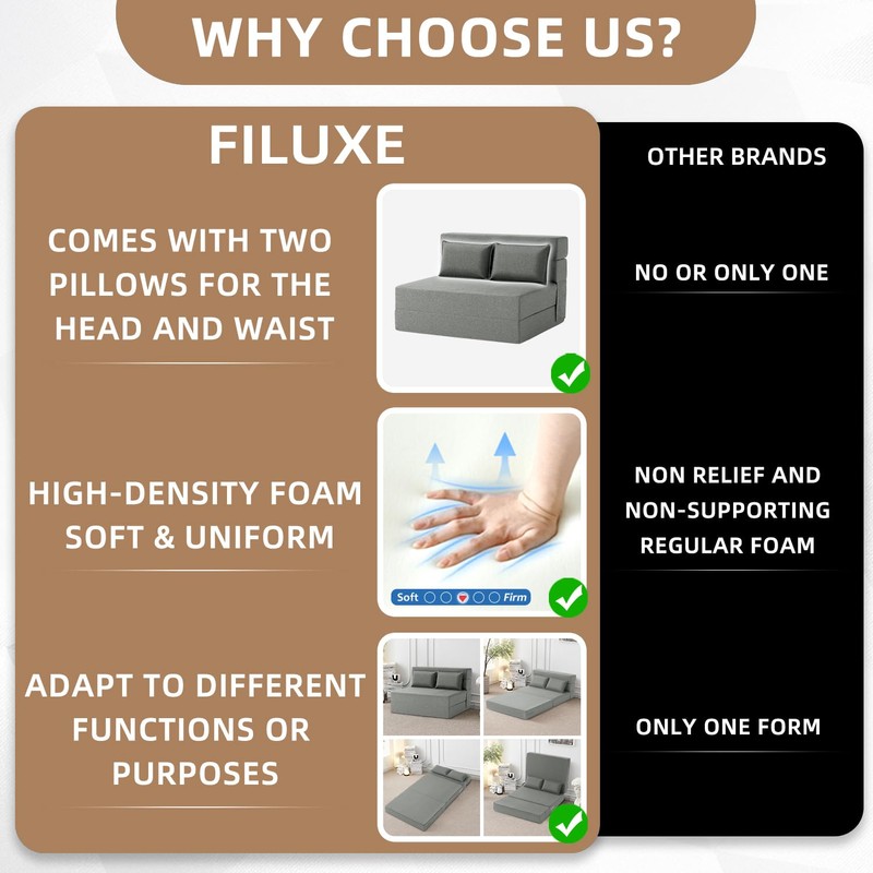 - Premium Fabric & Foam: This foldable sleeper sofa features High-Density foam, is soft and uniform, rebounds quickly, and is not easily deformed. The fabric is breathable, resilient, stylish, and removable for washing.