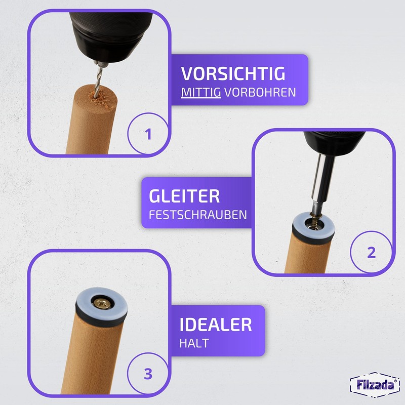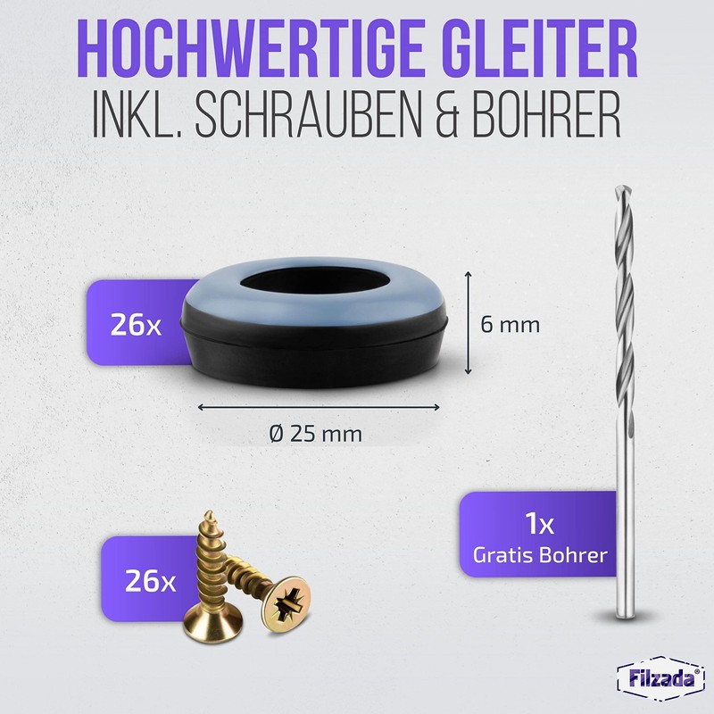 - Product features: 26 pieces, diameter 25 mm, round, search for "Filzada felt glides" for the entire Filzada felt glider range