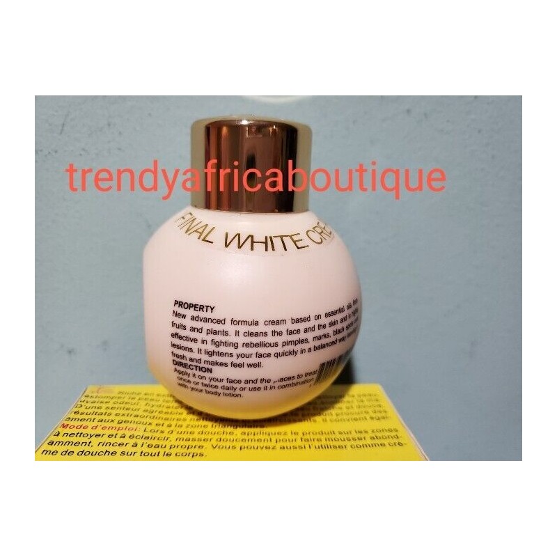Final white face cream is formulated with essential oils that fade away sun burn with consistent usage. Apply morning and evening. Also treat age spots and more