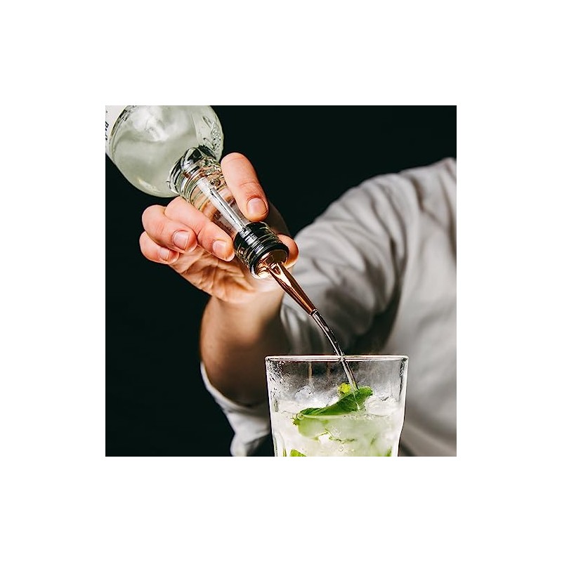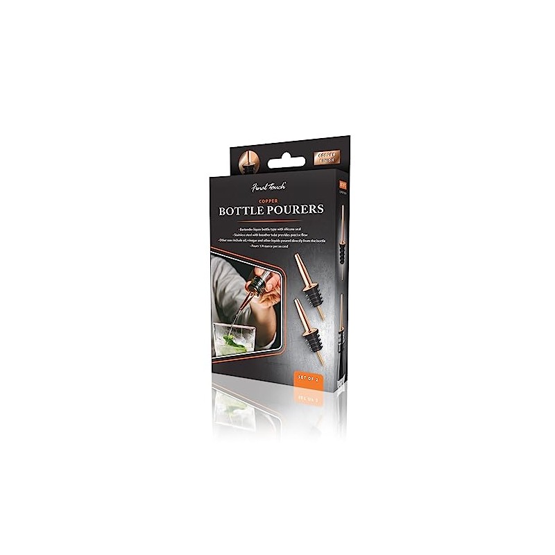 - Includes: 2 stainless steel bottle pourers with copper finish. | Dimensions: 1.4 x 1.2 x 3.9 in (3.5 x 3 x 10 cm) | Material: stainless steel & silicone | Washing: hand wash
