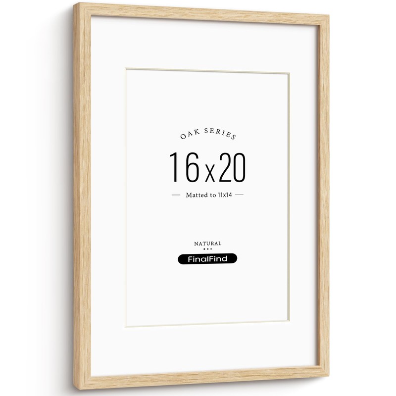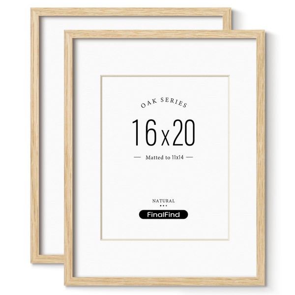 FinalFind Minimalist 16x20 Frames with Mat for 11x14, Natural Solid Oak Wood 16x20 Frame, Lightweight for Wall Mounting(2 Pack, Oak)