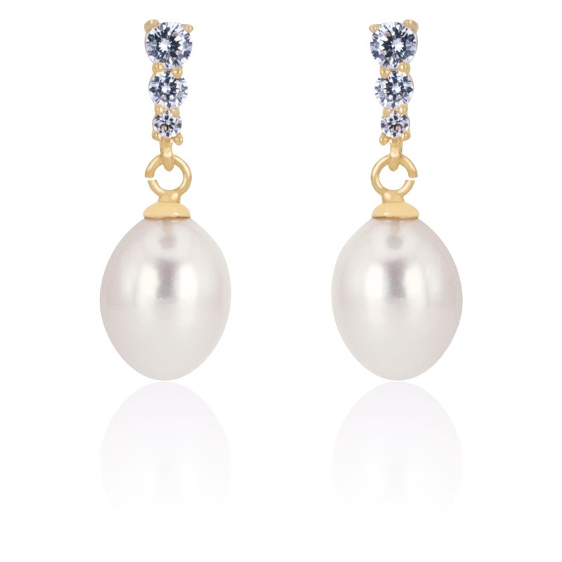- Indulge in the luxurious beauty of our 18K Gold Plated 925 Sterling Silver Fresh Water 9mm Cultured Pearl Cubic Zirconia Earrings. These stunning earrings feature a 9mm freshwater cultured pearl and a sparkling cubic zirconia stone, both set in high-quality 925 sterling silver and plated with gold.