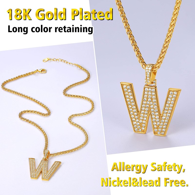 - 😎【Material】 Made of high quality 18K gold plated on brass with excellent polishing and electroplating craftsmanship, which will make it look gorgeous and sparkling. The wheat chain is made of stianless steel with 18k gold plated. Our letter pendant necklace is nickel free, lead free, allergy free to skin and will not break, tarnish, fade easily.