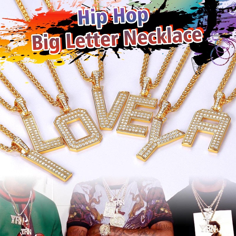 - 😎【BIG LETTER PENDANT】This bold letter iced out pendant with fully CZ inlaid is a hit, and will show off your hip hop style. Premium pave setting handwork with care and precision, the cubic zirconia gem stones will not get loose and fell out. Simple and Stylish jewelry for the modern men who appreciate unique and high quality jewelry which will add bling and shine to your look .