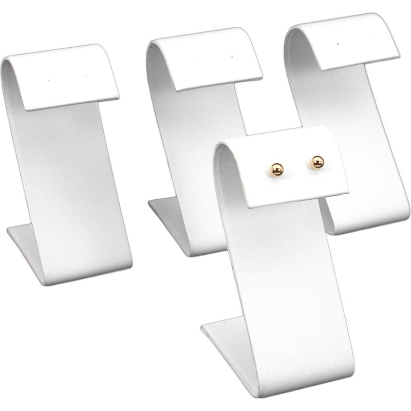 4 White Faux Leather Earring Display Stands For Jewelry Showcases & Countertops This is a new set of 4 white faux leather earring display stands Great for displaying jewelry on countertops and showcases Each measures approximately 1 1/2" x 2 1/8" x 3 1/4" (38.1 x 54 x 82.5 mm)