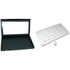 FindingKing Black Glass Top Jewelry Case (Snap close lid) w/ White Foam 50 Gem Jar Insert